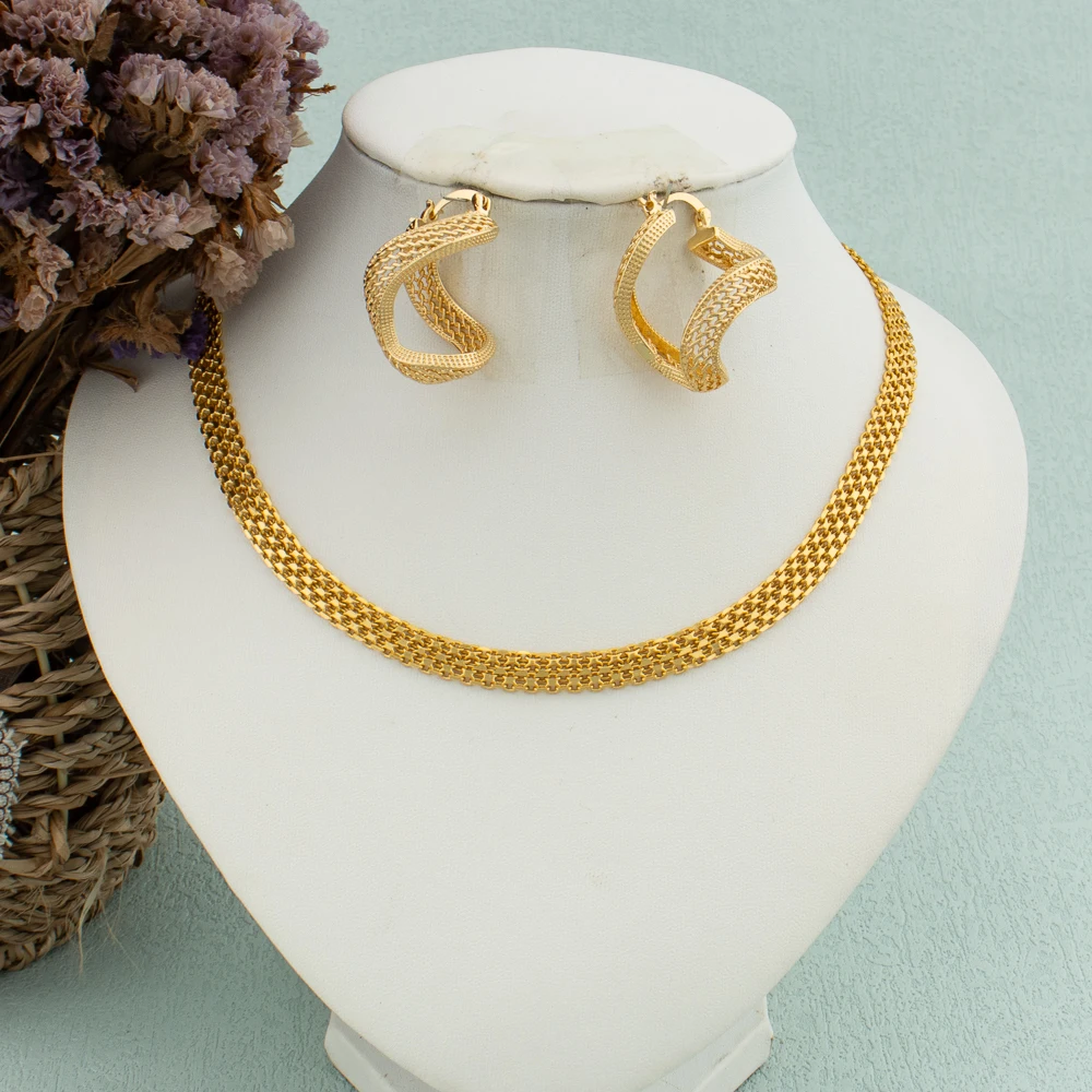 color: Gold Color Twist Hoop Earrings Copper Italy Chain