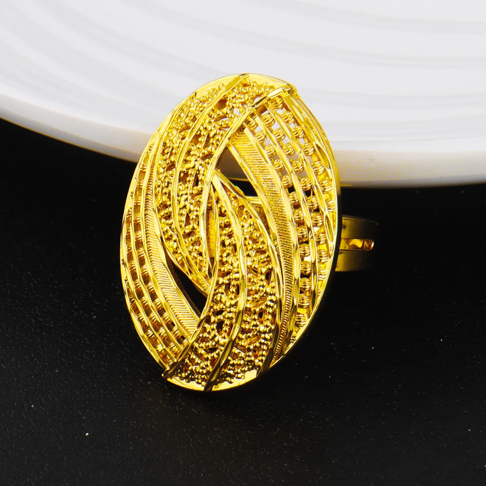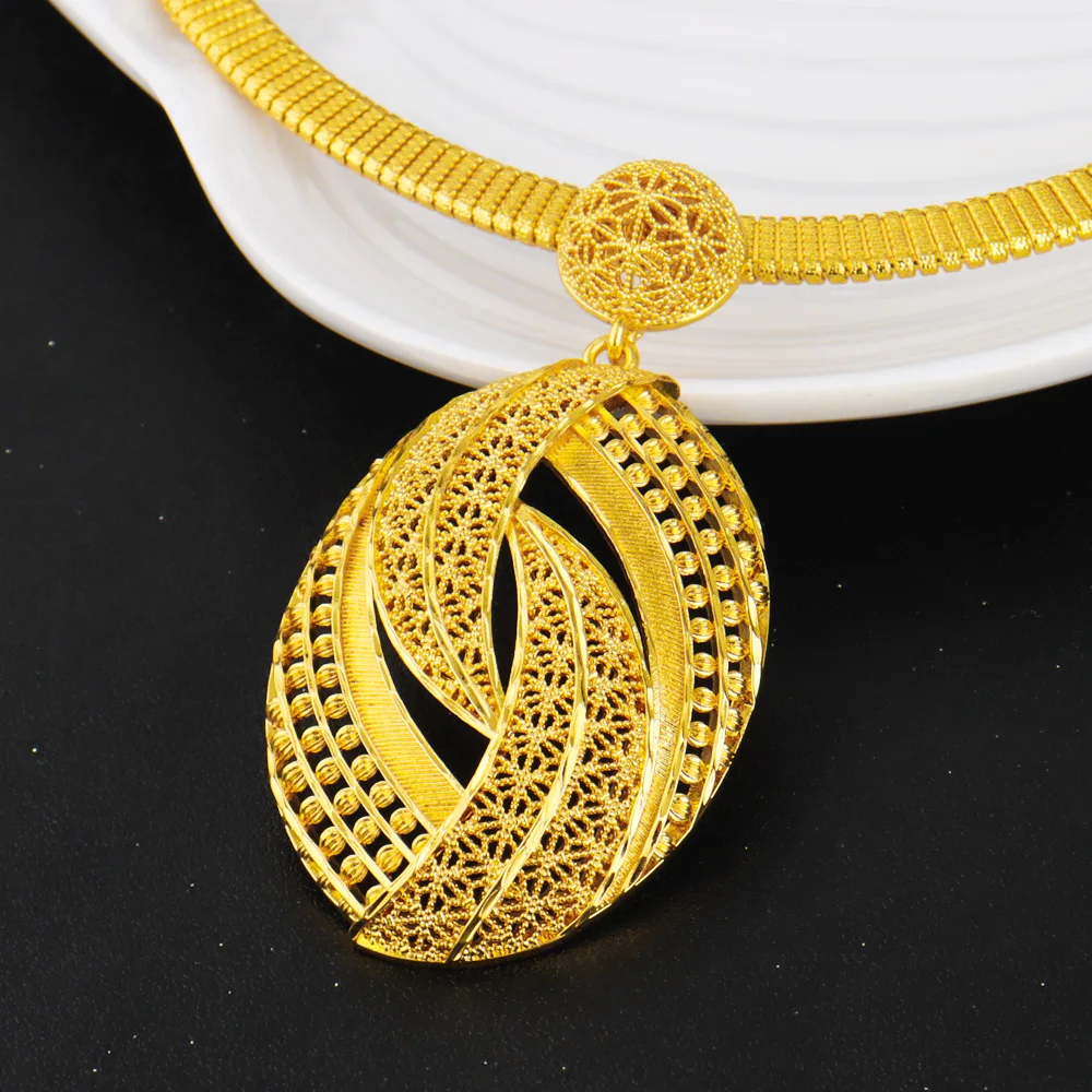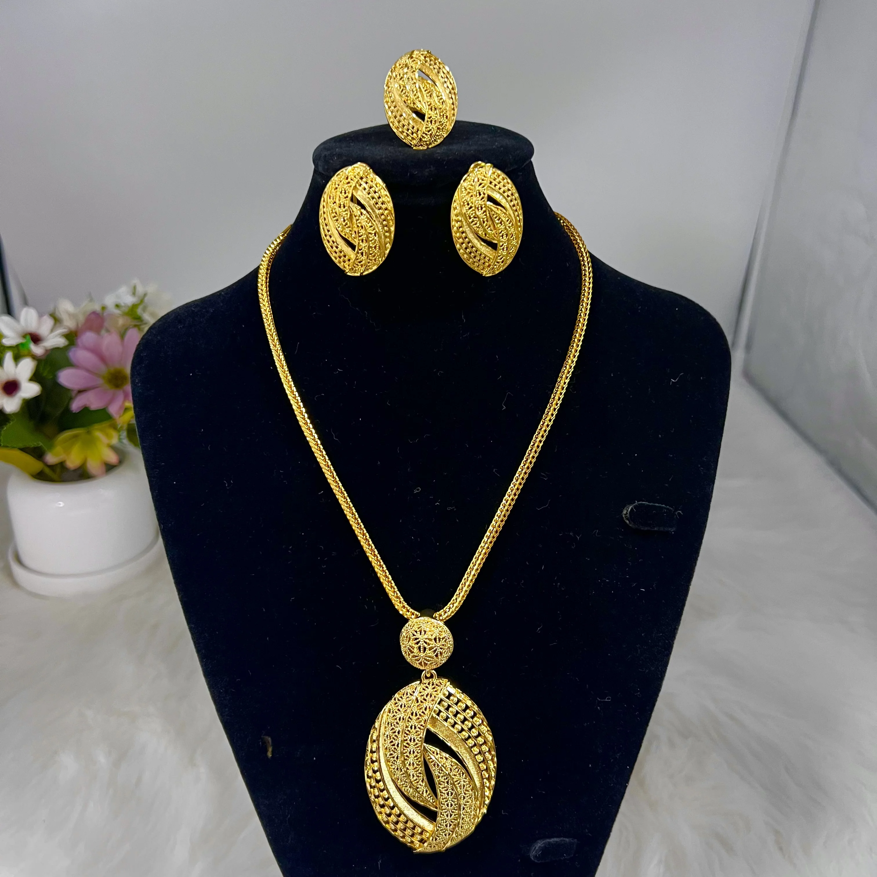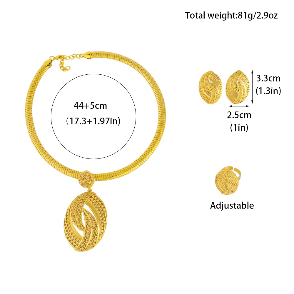 Low-key Luxury Gold Plated Necklace Ring Earrings Jewelry Set for Women Girl Noble Design Jewelry Accessories Gift For Party