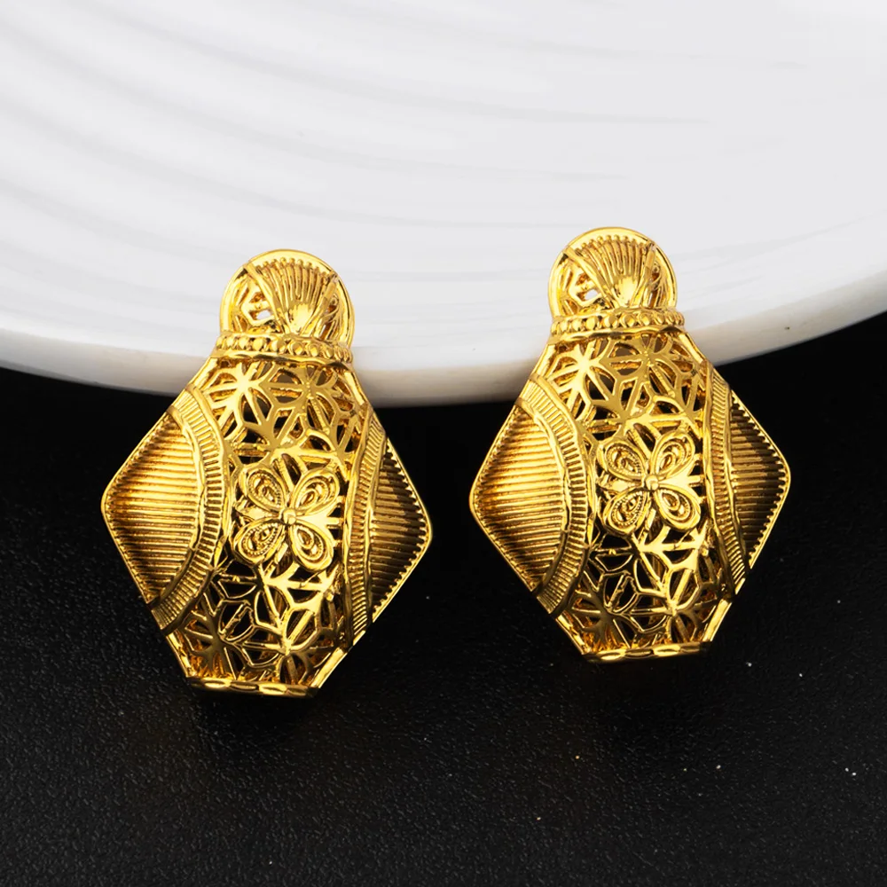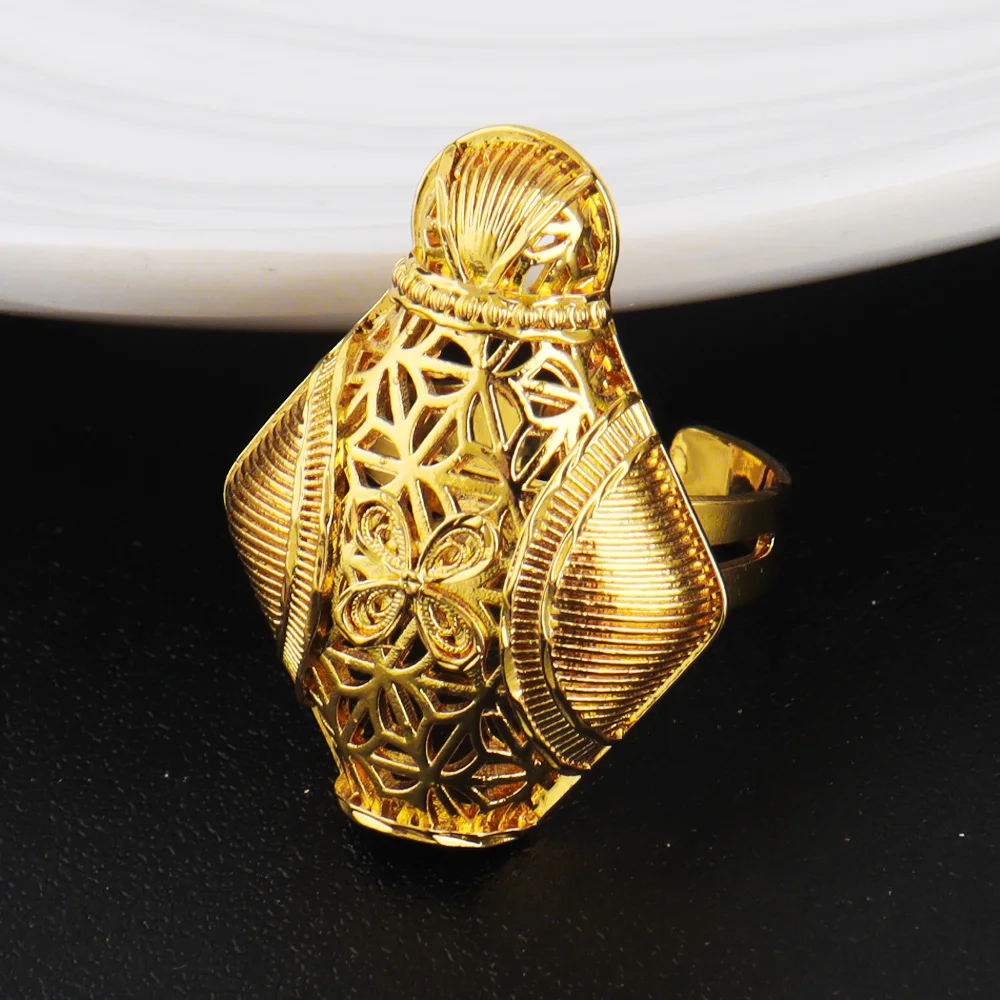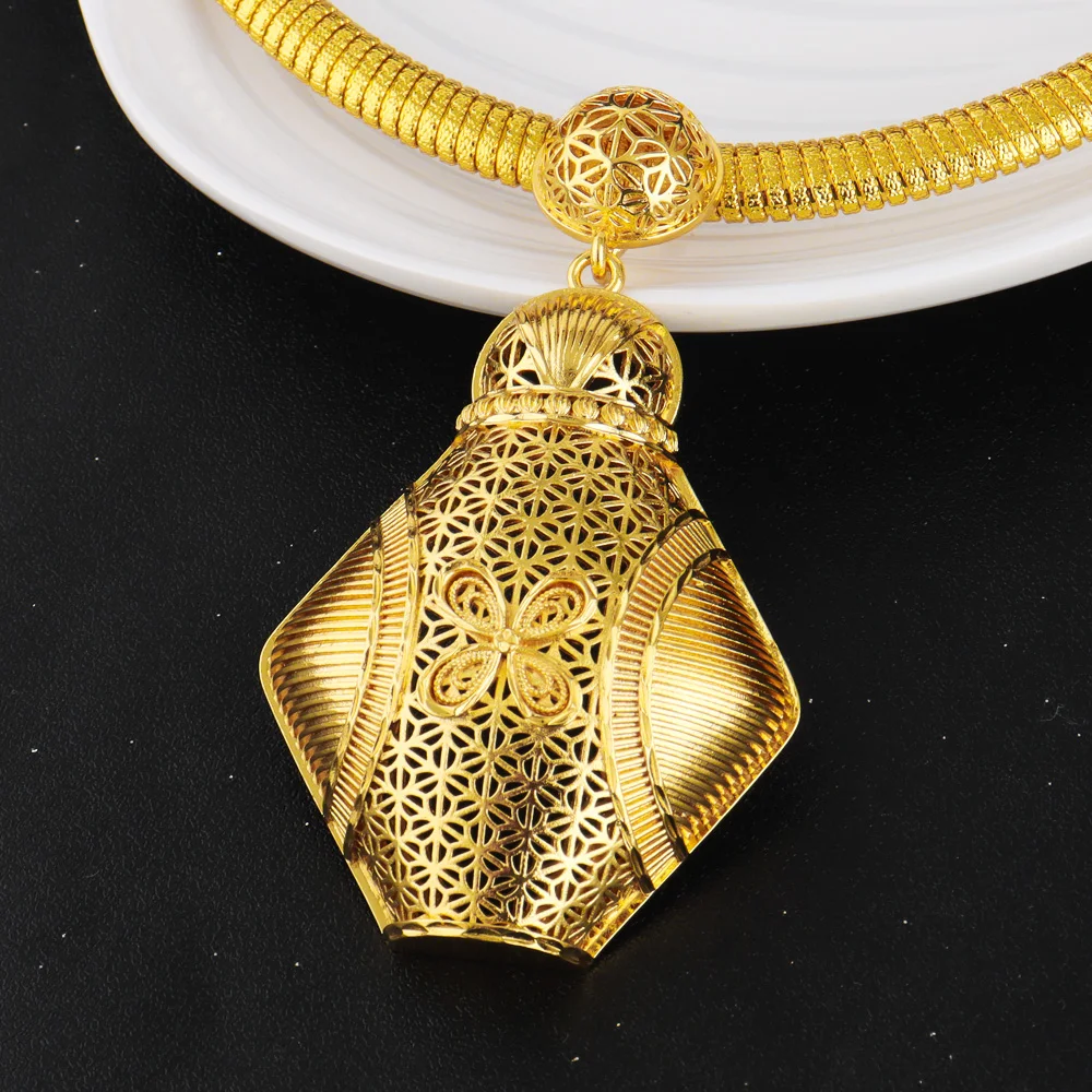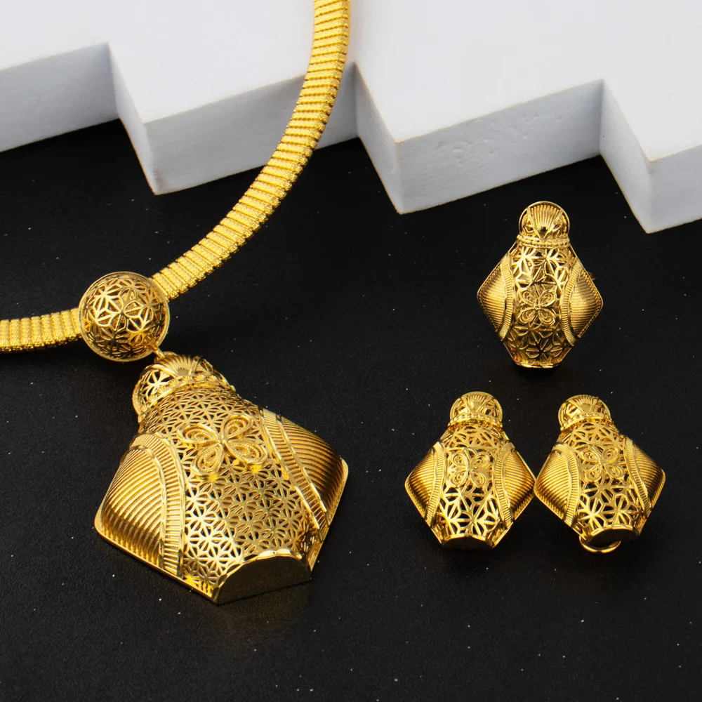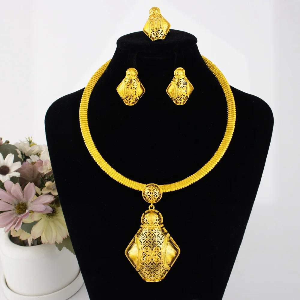 Luxury Nigeria Gold Color Jewelry Set For Women Dubai Nesting Doll Necklace Ring Drop Earrings Gift For Young Girl Party Easter