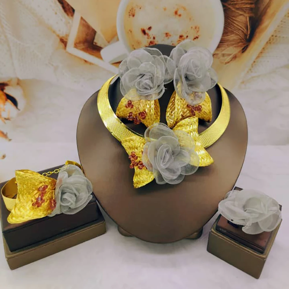 Woman Necklace Unique Gold Color Copper Cuff Jewelry Set Fashion Necklace Earring Ring Bracelet Wedding 38 Women's Day Gift